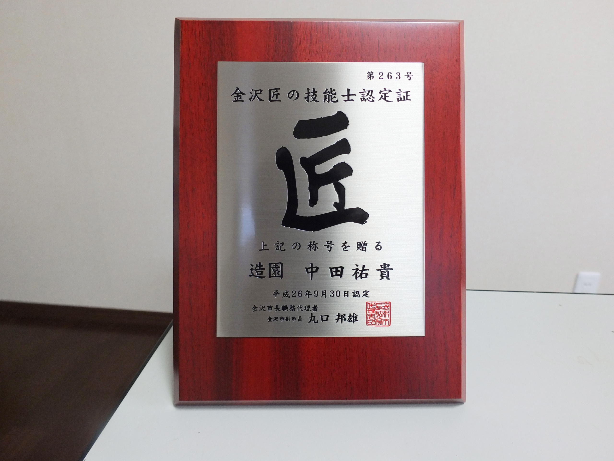 三世代造園技能士家族表彰 2013 5/24 その他 2013.05.24 2013.05.24 日本造園組合連合会より3世代にわたり、国家資格である「1級造園技能士」を取得したため、家族表彰を受けました。 その他 ガーデンリフォーム 関連記事 モデル庭園受賞「石川県知事賞」 2018.04.09 歴史的建造物修復士認定 2017.09.30 町屋巡遊2016庭園案内 2016.09.22 金沢市匠の技顕巧賞 2018.01.25 除雪作業 2021.01.13 門松作成 2019.12.28 金沢匠の技能士認定 2014.09.30 巨木の移植 2019.03.30