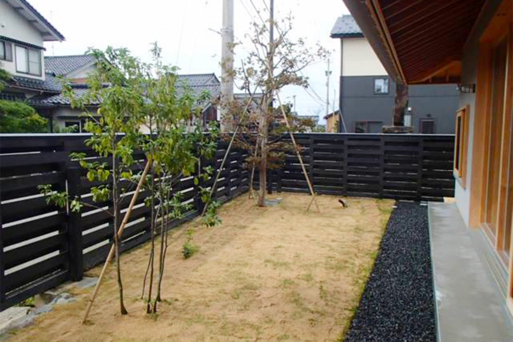 木材を防腐処理し、店舗の目隠しを作成しました。 -
